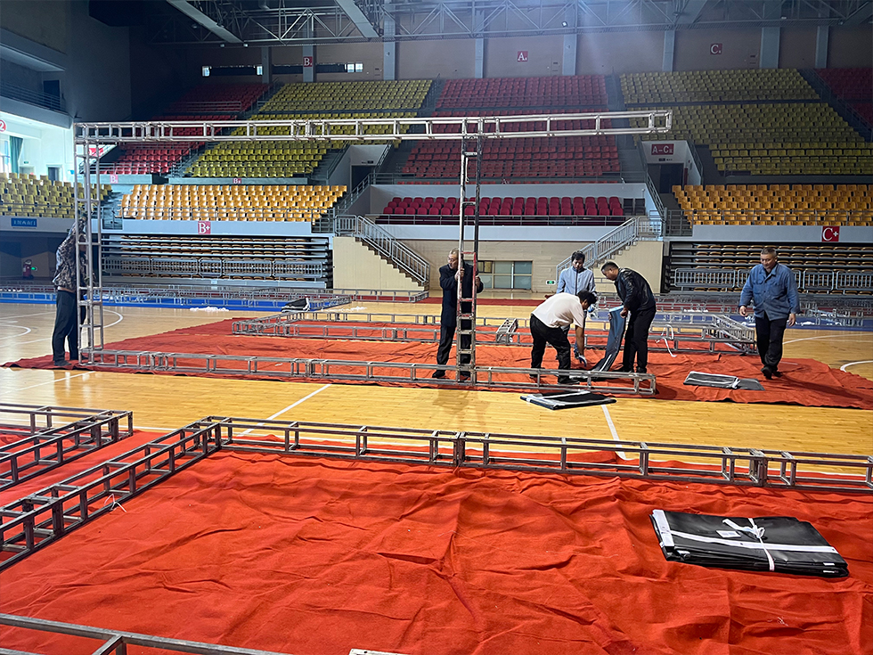 为确保发放工作高效有序进行,场馆中心提前与赛事主办方沟通协调,制定详细实施方案。赛前,场馆全面完成场地清洁、电力保障等准备工作,并在舞台搭建过程中督促落实主馆及功能馆的地毯保护措施,确保施工安全与场地完好。