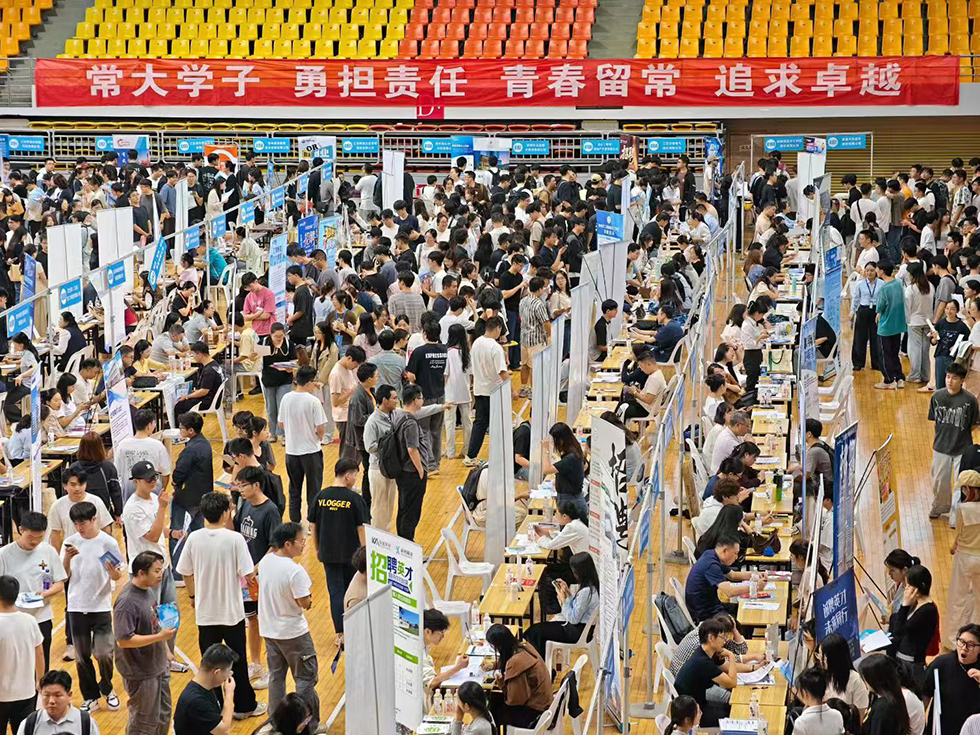 10月15日,由江苏省教育厅、江苏省人力资源和社会保障厅等单位主办的江苏省2026届在常院校毕业生暨新能源与智能制造常州大学专场招聘会在常州大学体育馆举行。