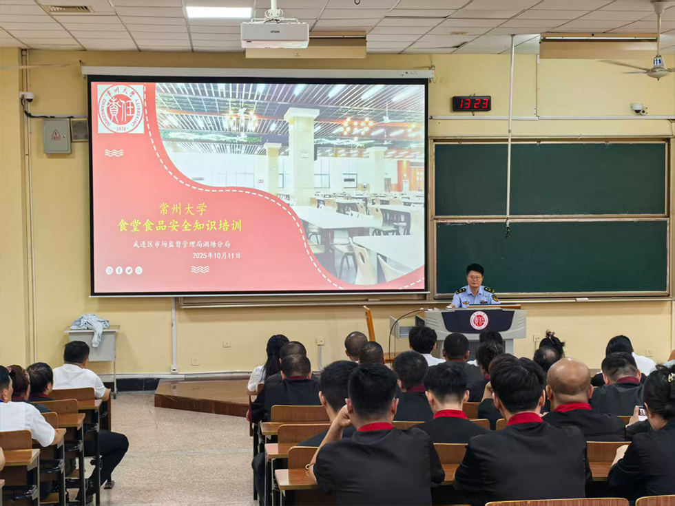 为切实增强从业人员食品安全责任意识,深入落实“安全生产月”活动部署,10月11日,科教城校区食堂特邀武进区市场监管局湖塘分局副局长常英杰开展食品安全专题培训。分局副中队长乔楠协同参与培训组织工作,百余名一线职工参加培训。