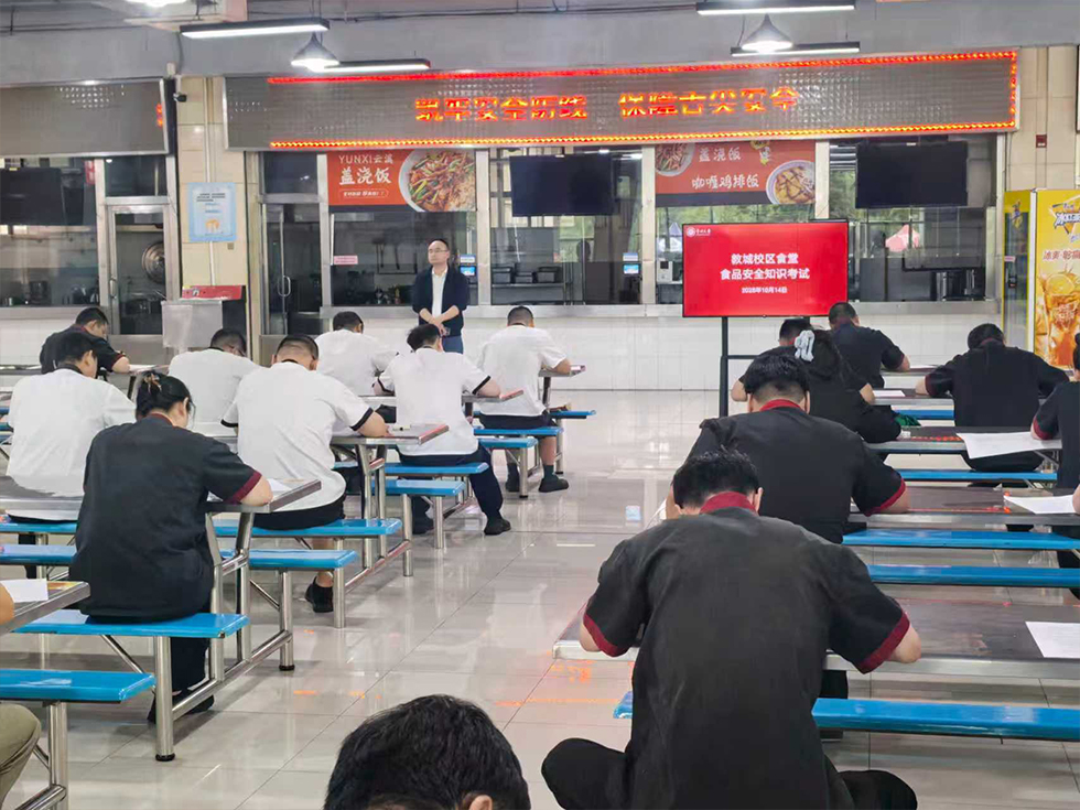 为全面评估并巩固前期食品安全培训成效,进一步强化从业人员专业素养,10月14日下午,科教城校区食堂组织开展食品安全知识考试,37名职工代表参加。