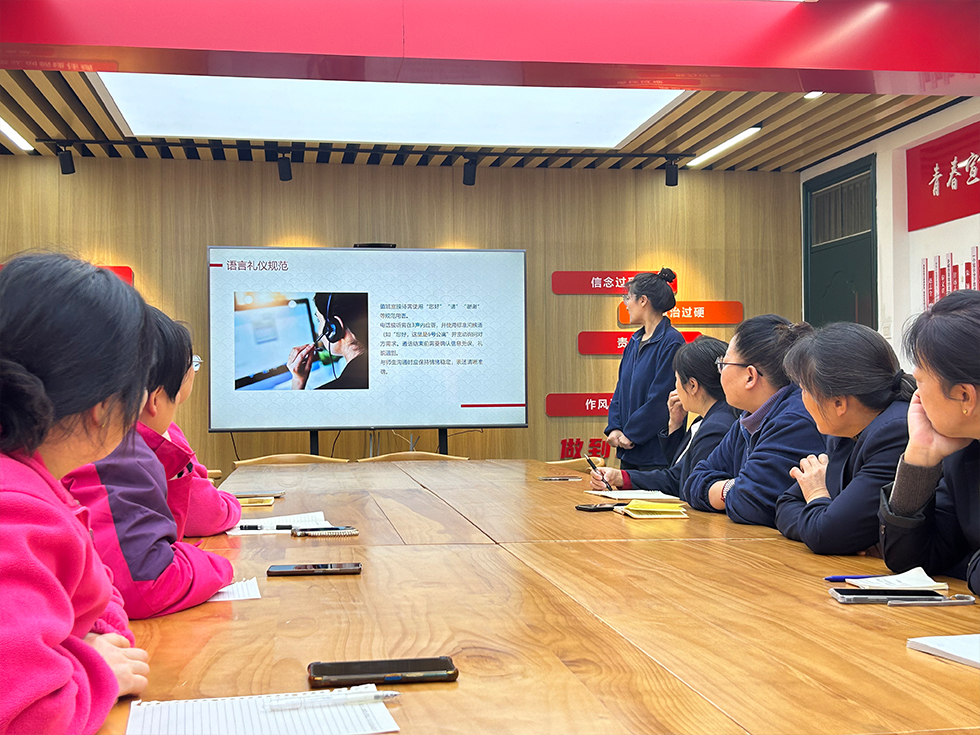本次行动紧扣“全覆盖、无死角”目标,从设施完善、卫生整治、队伍建设三方面同步发力。规范设置公共区域“小心地滑”指示牌,更新楼梯安全标识,协助完成快递外卖置物架标识张贴;对公寓门厅地面进行深度清洗,清洁楼体外立面,彻底清理绿化带碎石杂物,增加楼内动态保洁频次,确保环境质量稳定达标;开展“理论讲解”与“现场示范”相结合的服务礼仪培训会,提升管理员接待规范与服务水平,强化保洁人员责任意识与操作技能。