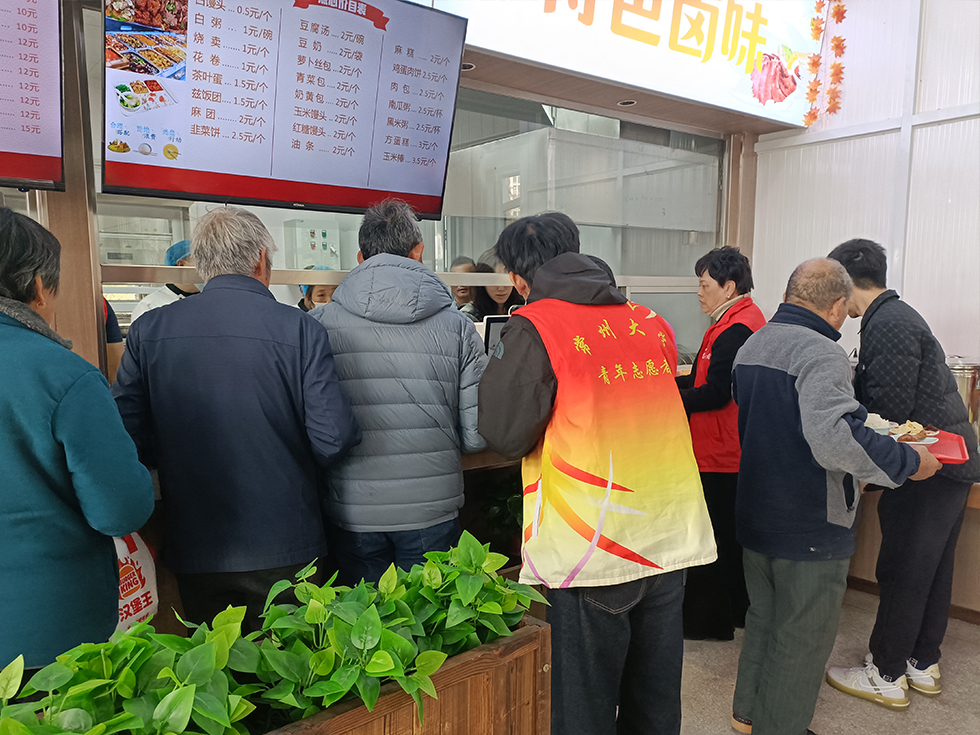 该餐厅干净整洁、环境温馨、设备设施齐全,可同时容纳200余人就餐。餐厅统一采购食材、更新菜单,主打低盐、低脂、软烂的健康菜品,并采用“自助选餐+按需打饭”模式,既丰富选择又减少浪费。餐厅价格亲民实惠,60周岁以上老人还可享受政策补贴。开业当天,食堂便已热闹非凡,周围居民迫不及待走进餐厅,在志愿者引导下有序选餐,大堂内座无虚席,气氛热烈。