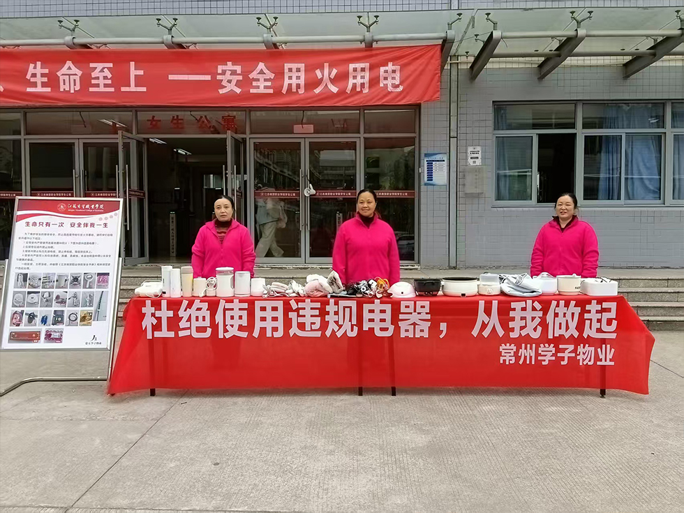 为杜绝宿舍安全隐患,增强学生安全意识,近日,江苏商贸管理部在学生公寓区举办了违章电器警示教育展。