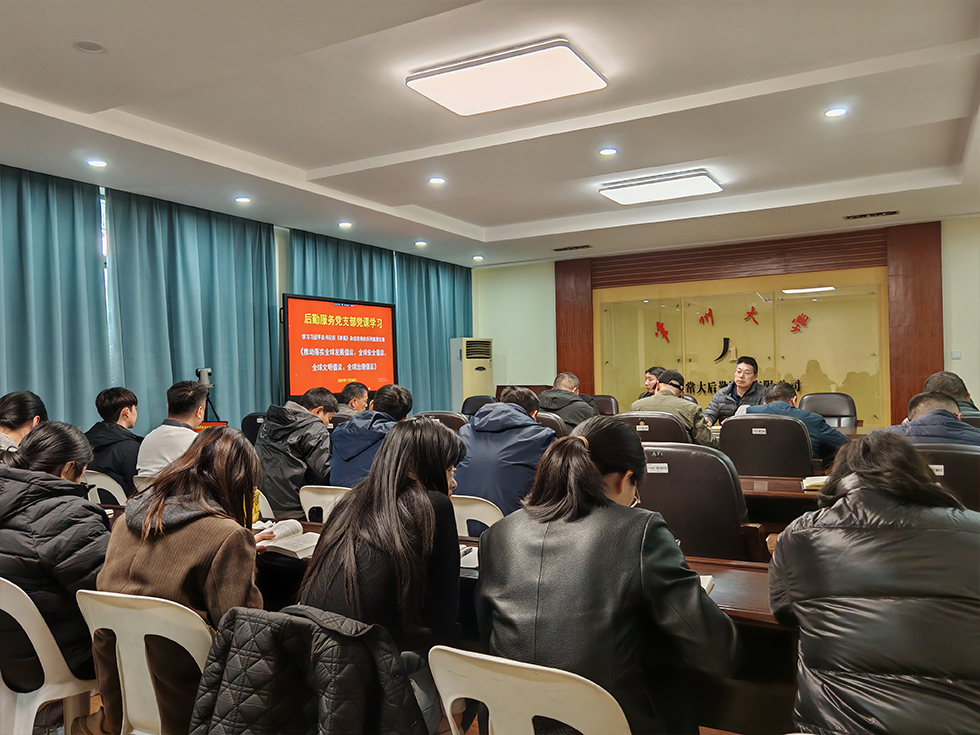 11月28日,后勤服务党支部在公司会议室召开专题党课,以全球视野锚定服务方向,以规划蓝图明确奋进路径,将四大全球倡议与“十五五”规划部署深度融入后勤服务实践,推动理论学习转化为履职实效。支部书记李书明主持会议,全体党员参加。