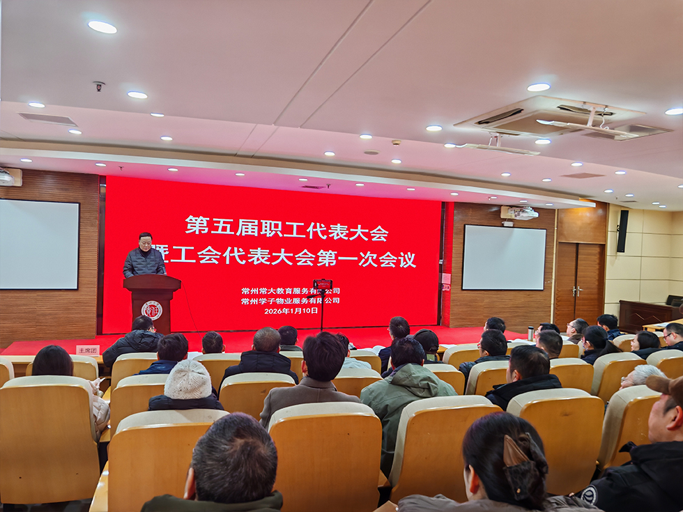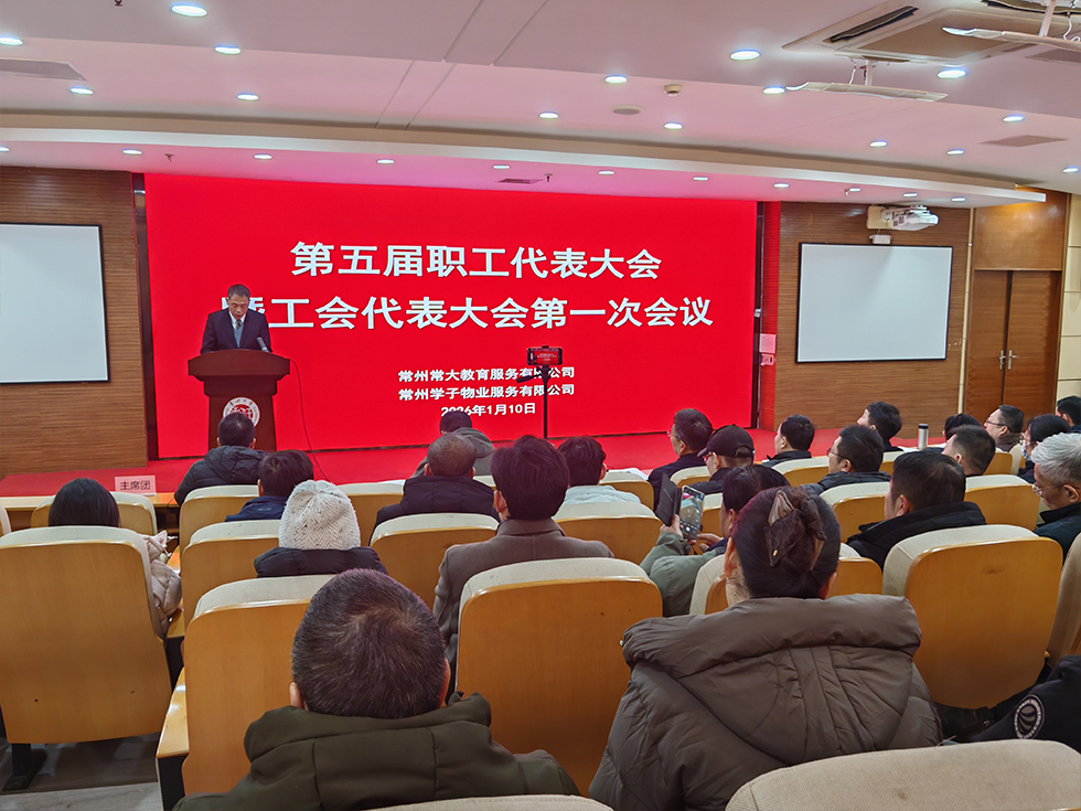 2026年1月10日,常州常大教育服务有限公司、常州学子物业服务有限公司第五届职工代表大会暨工会代表大会第一次会议在常州大学科教城校区图书馆报告厅召开,公司领导、正式代表与相关列席人员参加会议,主席团成员李书明主持会议。