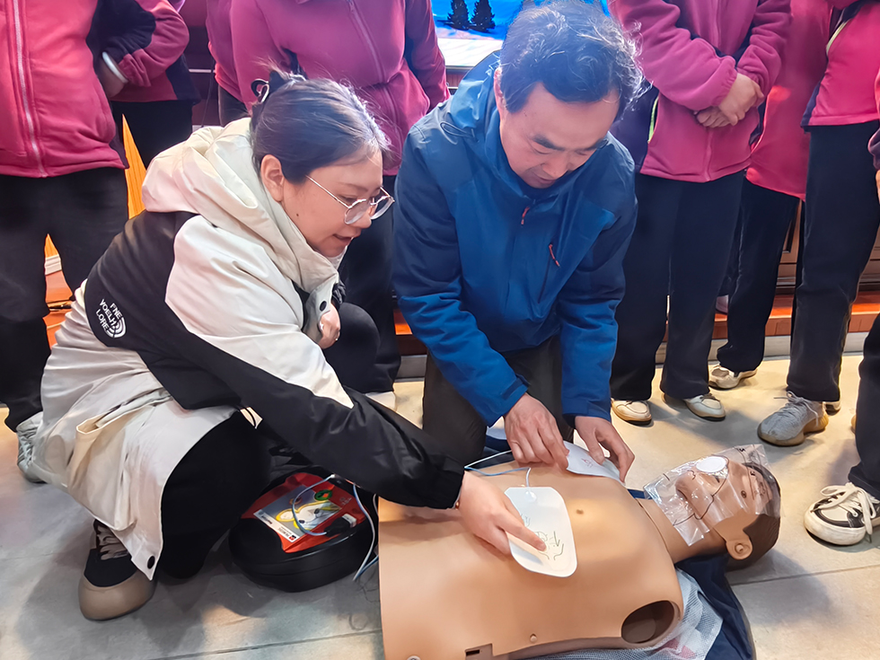 本次培训系统讲解了心搏骤停识别、胸外按压与人工呼吸操作要领,以及AED的工作原理和适用场景。培训老师现场演示心肺复苏完整流程及AED规范使用方法,着重强调“按压优先、快速除颤”的急救原则。参训人员认真开展模拟实操练习,确保急救动作标准规范、处置流程熟练掌握。